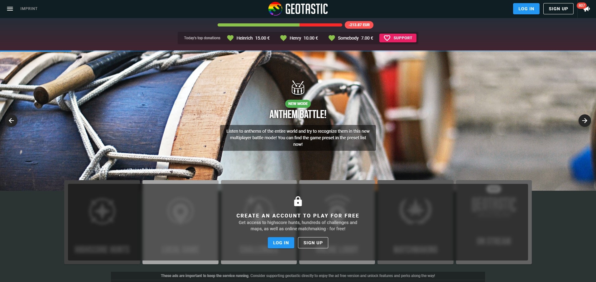 Before you start playing, you’ll need to create a free account. In short, there are endless ways to play Geotastic, with multiple modes and a wide range of challenges. If you enjoy the game, consider donating to help keep it running. The only limitation is that the challenge mode currently supports 88 countries.