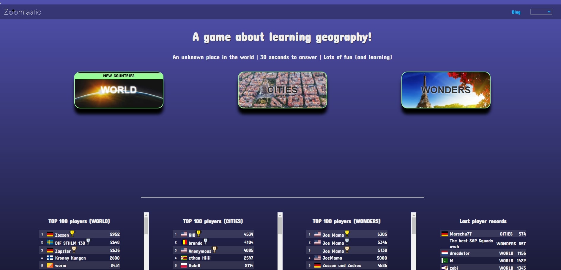 Zoomtastic lets you learn about different countries in a fun and fast-paced way. The game starts by showing you a randomized map of a country, and you have 30 seconds to guess the correct location. As time runs out, the game provides hints.